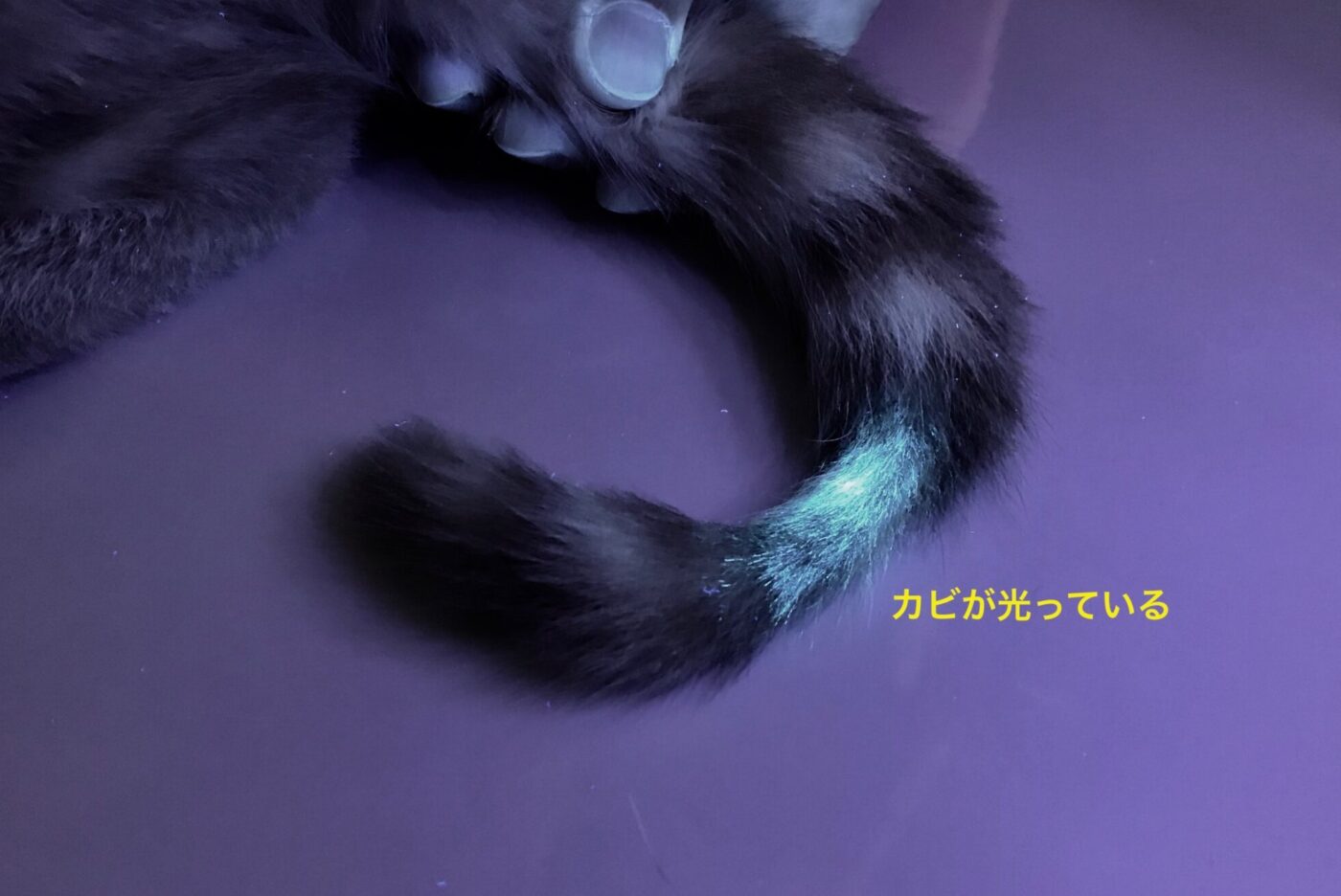 ウッド灯検査とは、特殊なライトを当てカビ(真菌)が光るのですぐに診断できます。