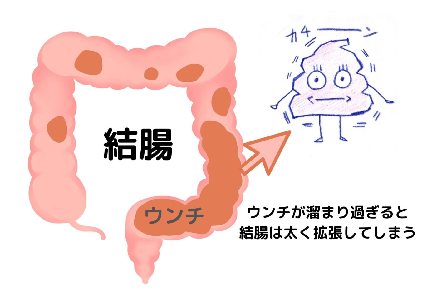さらに結腸が大量のウンチで大きく伸びていき、どんどん太くなります。