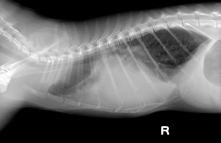 聴診は非常に大切な検査です。心臓の雑音がどの程度でどこから聴こえるか、どんなリズムか、などを聴き分けます。さらに肺の音を聞いて、心臓病が肺に影響していないかを確認します。